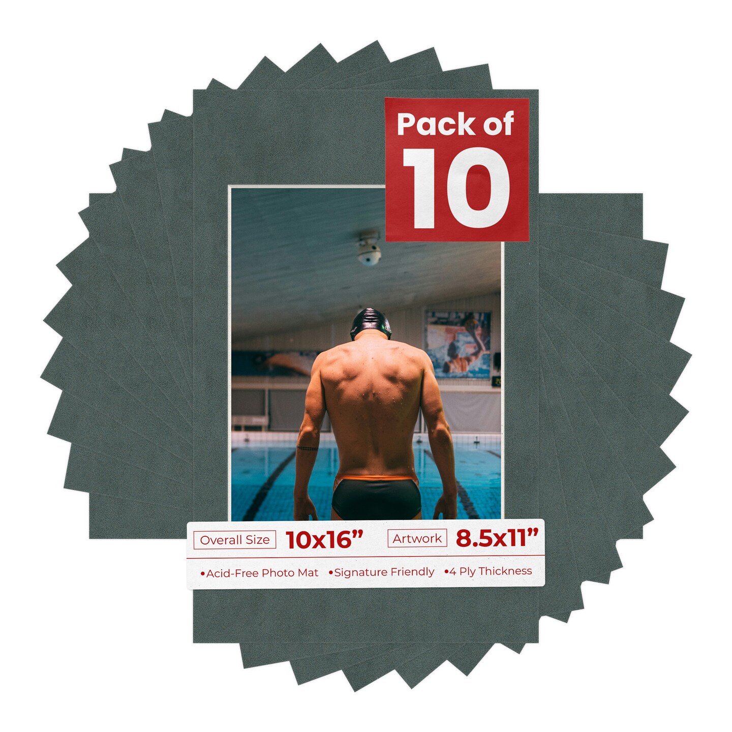 Dark Grey Suede Mat Board for 10x16 Frames - Fits 8.5x11 Photos