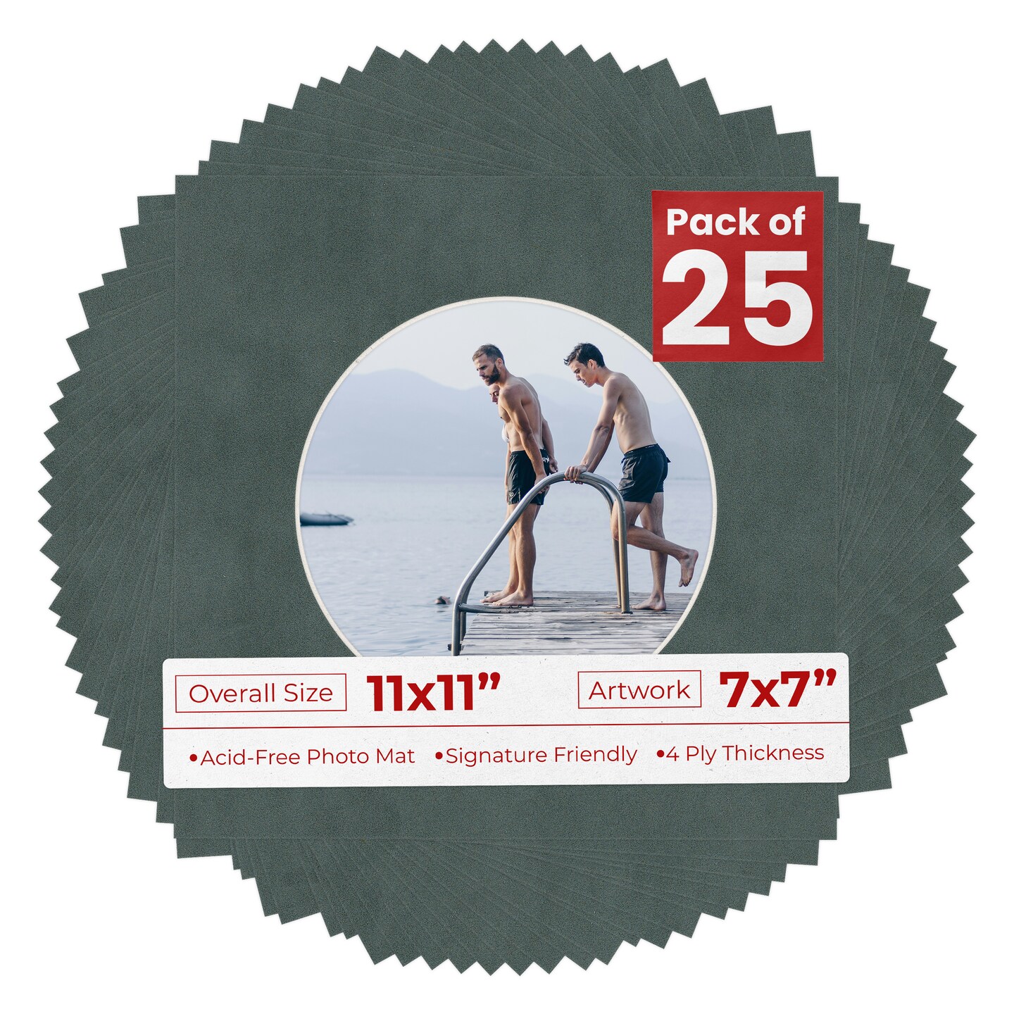 Dark Grey Suede Mat Board for 11x11 Frames - Circle Opening for 7x7 Photos