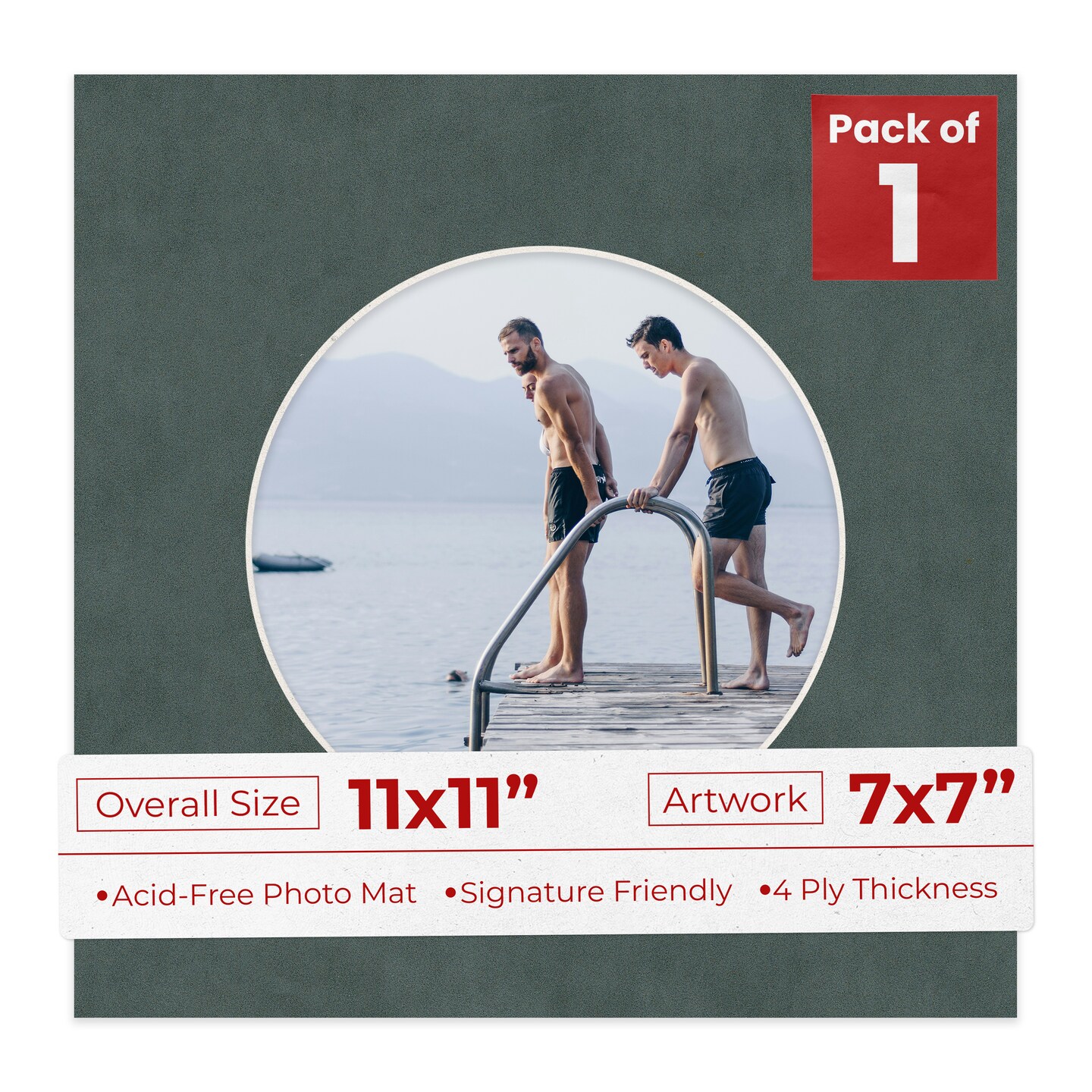 Dark Grey Suede Mat Board for 11x11 Frames - Circle Opening for 7x7 Photos