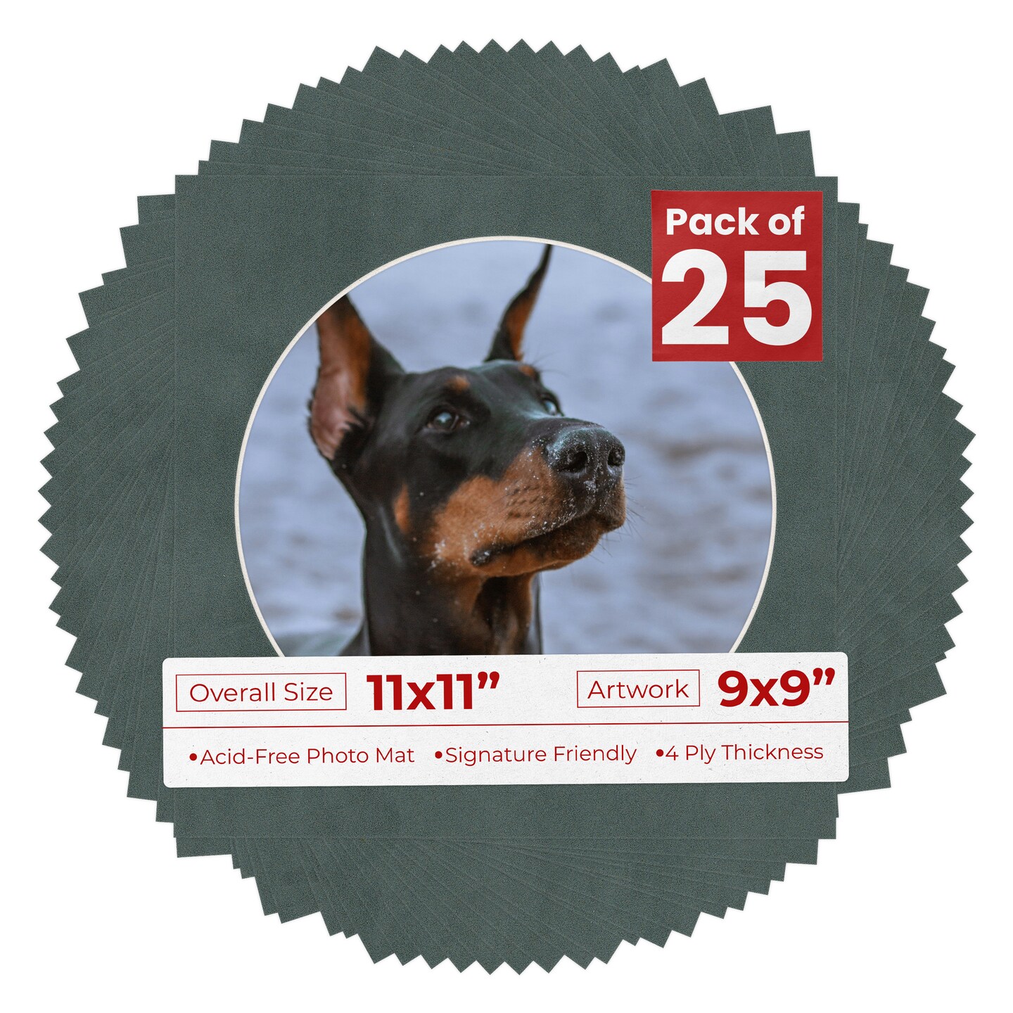 Dark Grey Suede Mat Board for 11x11 Frames - Circle Opening for 9x9 Photos