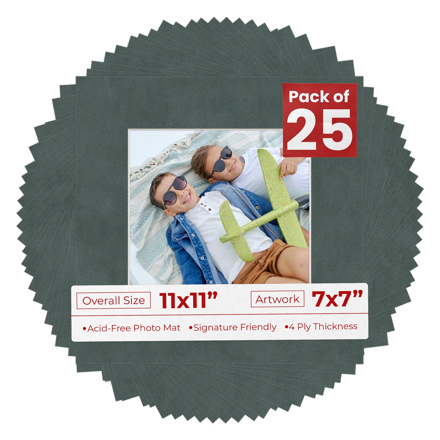 Dark Grey Suede Mat Board for 11x11 Frames - Fits 7x7 Photos