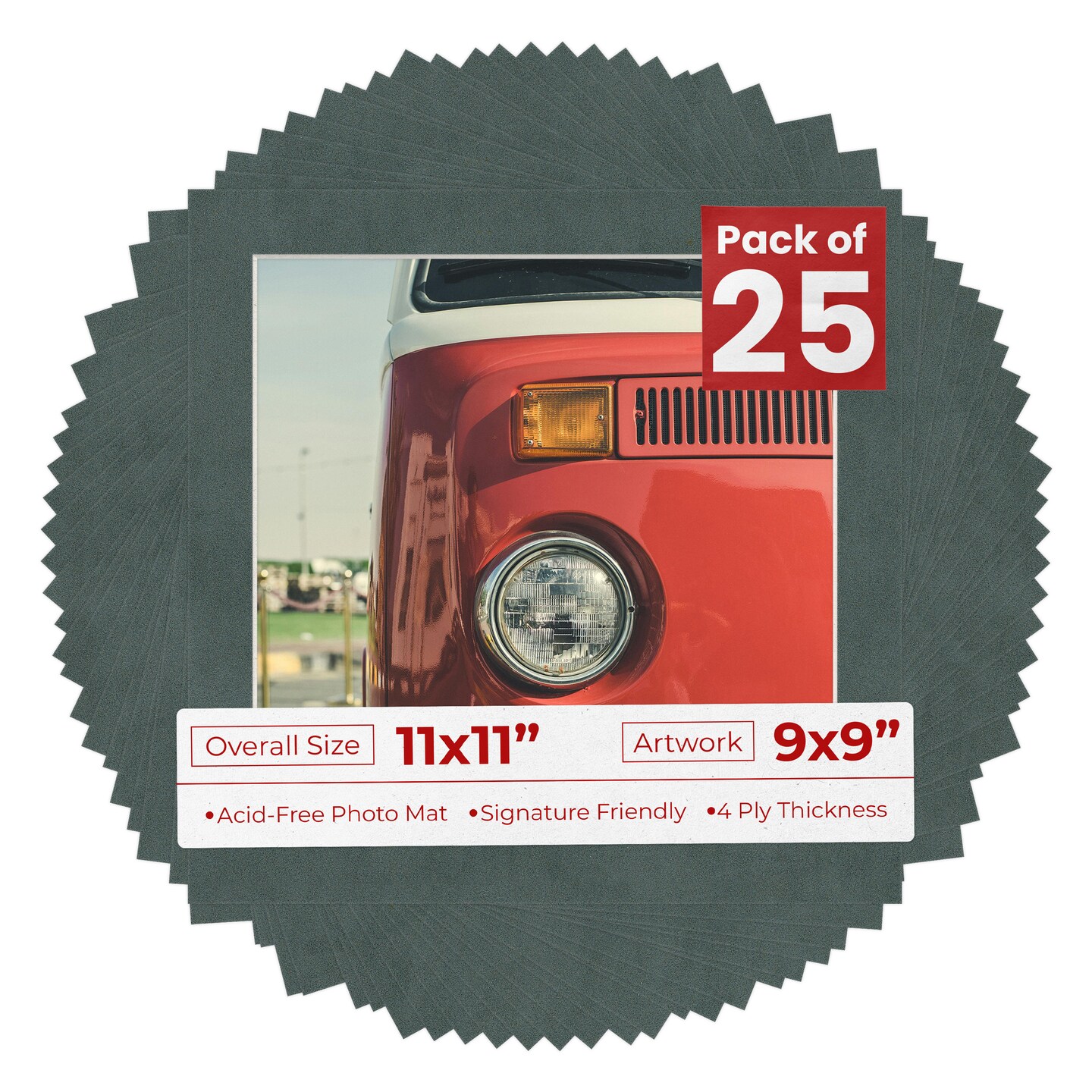 Dark Grey Suede Mat Board for 11x11 Frames - Fits 9x9 Photos
