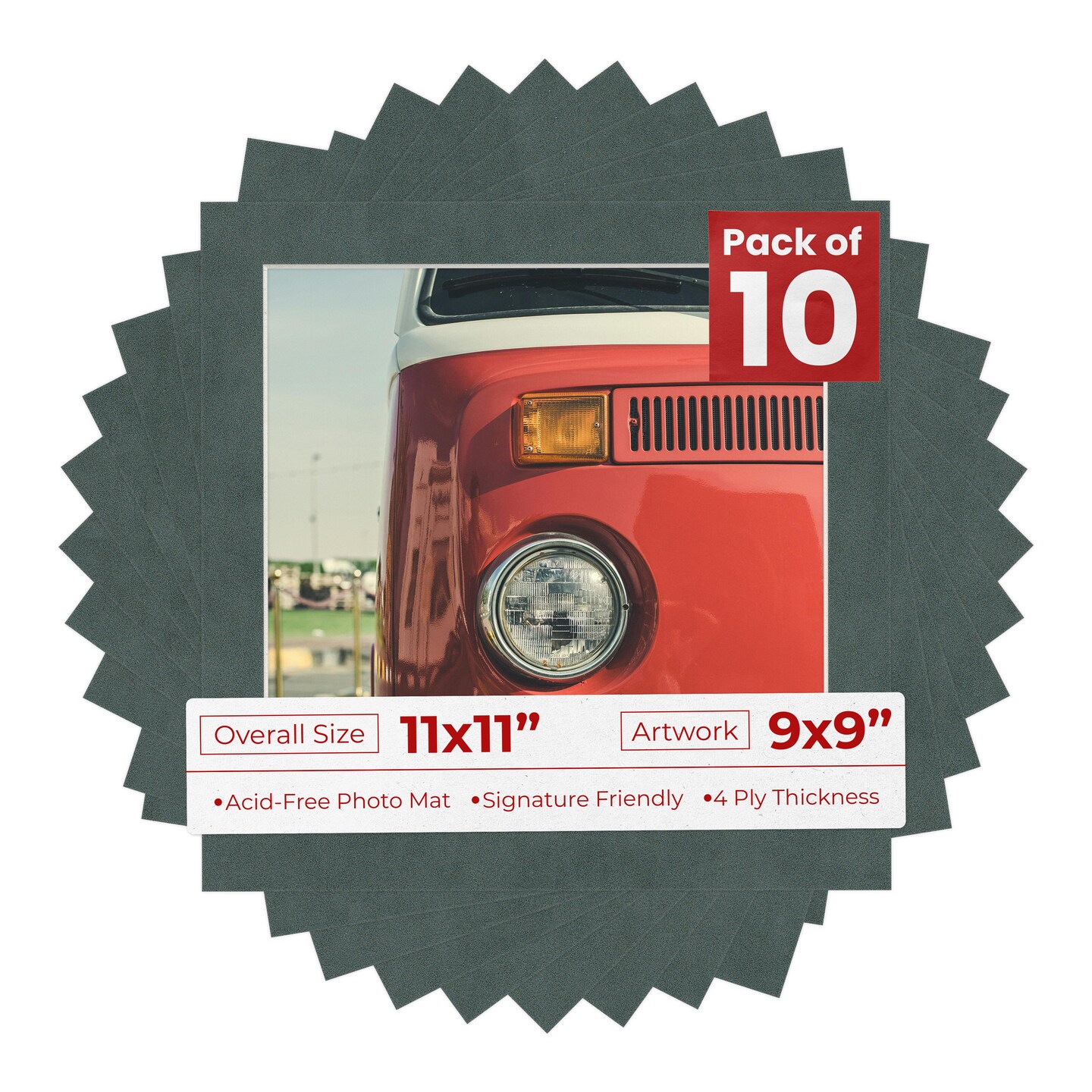 Dark Grey Suede Mat Board for 11x11 Frames - Fits 9x9 Photos