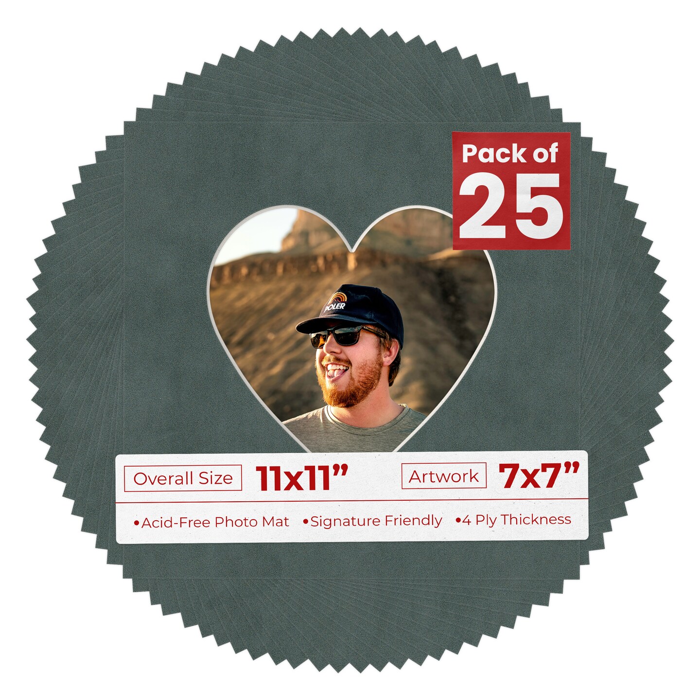 Dark Grey Suede Mat Board for 11x11 Frames - Heart Opening for 7x7 Photos