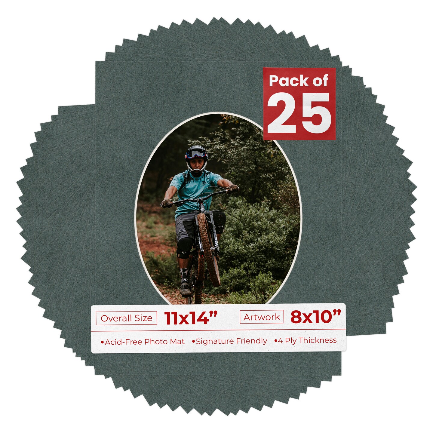 Dark Grey Suede Mat Board for 11x14 Frames - Oval Opening for 8x10 Photos