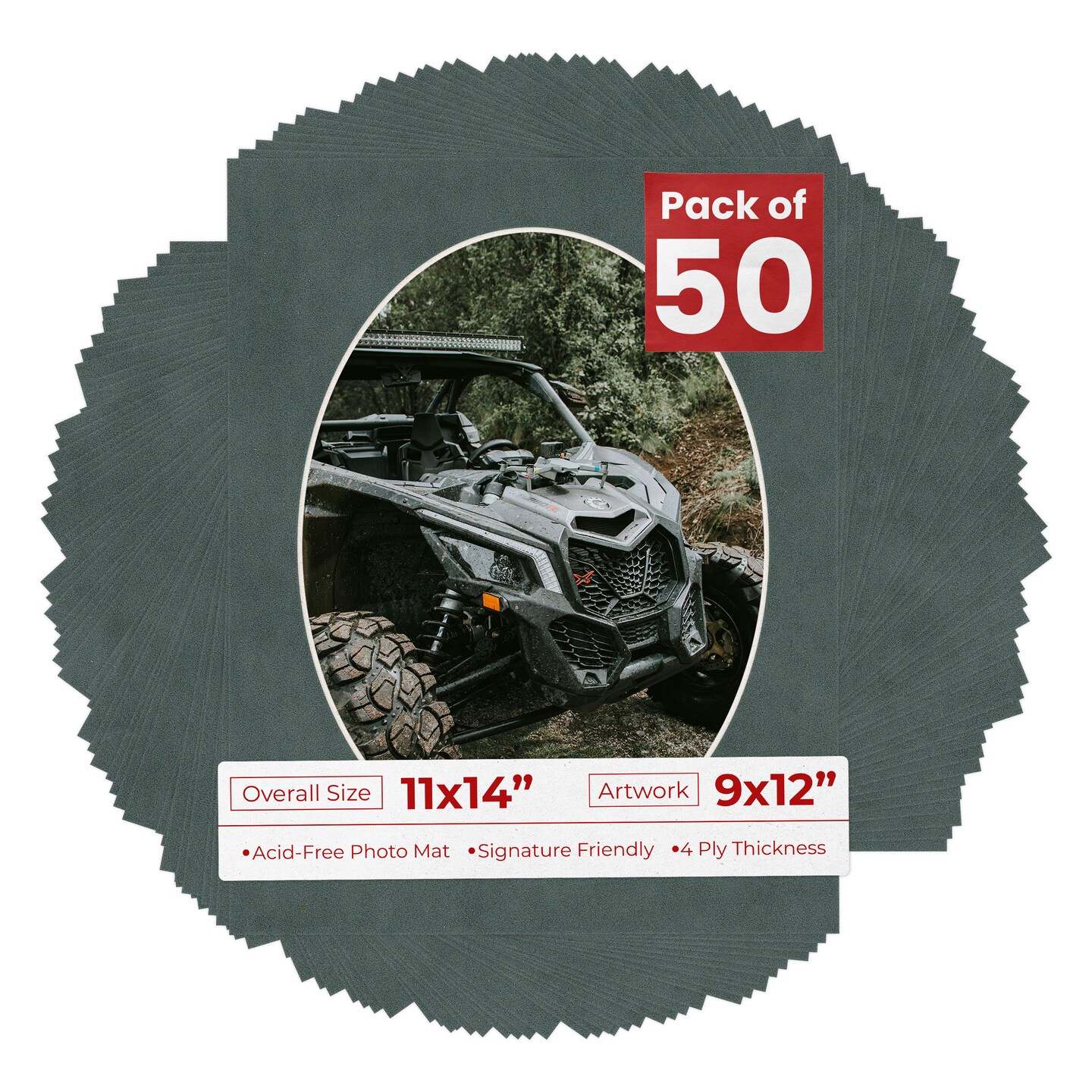 Dark Grey Suede Mat Board for 11x14 Frames - Oval Opening for 9x12 Photos