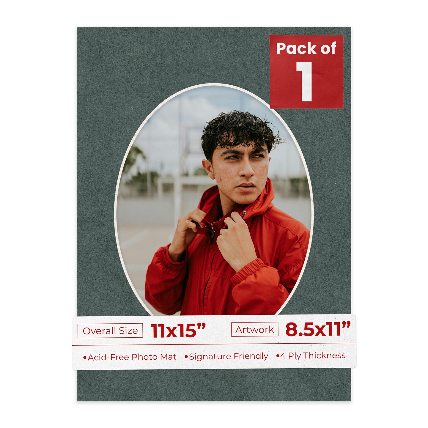 Dark Grey Suede Mat Board for 11x15 Frames - Oval Opening for 8.5x11 Photos