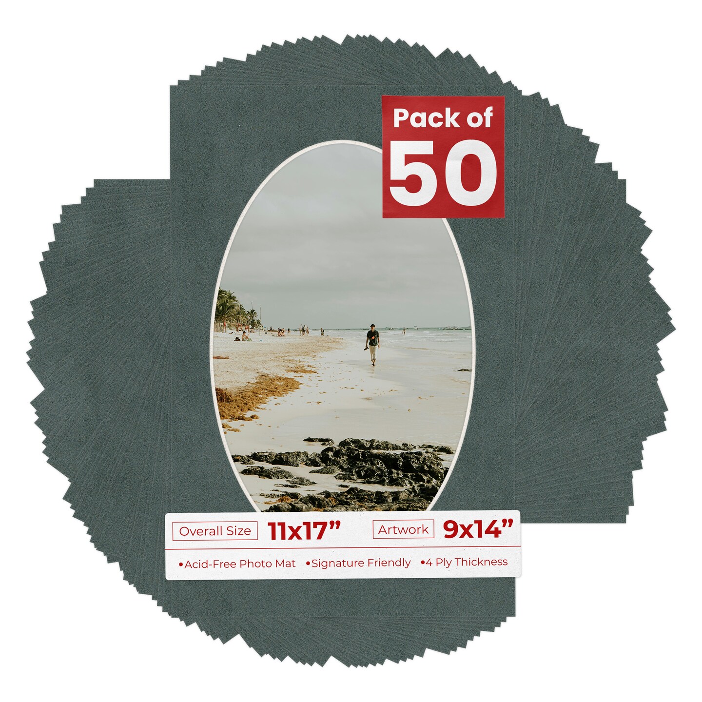 Dark Grey Suede Mat Board for 11x17 Frames - Oval Opening for 9x14 Photos