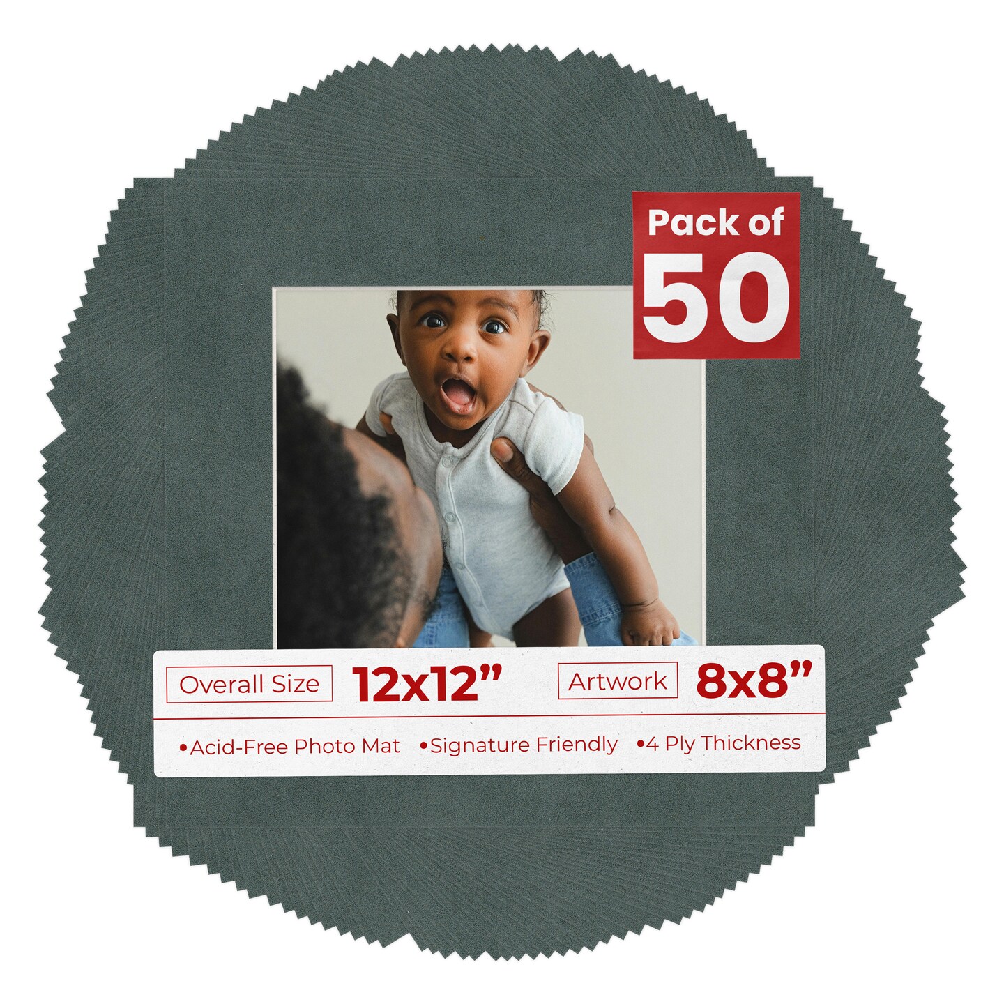 Dark Grey Suede Mat Board for 12x12 Frames - Fits 8x8 Photos