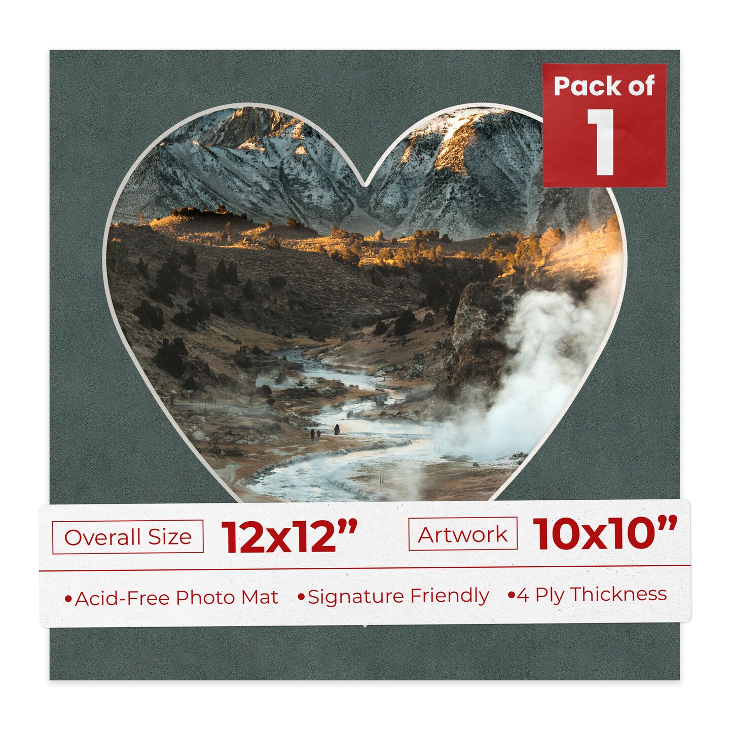 Dark Grey Suede Mat Board for 12x12 Frames - Heart Opening for 10x10 Photos