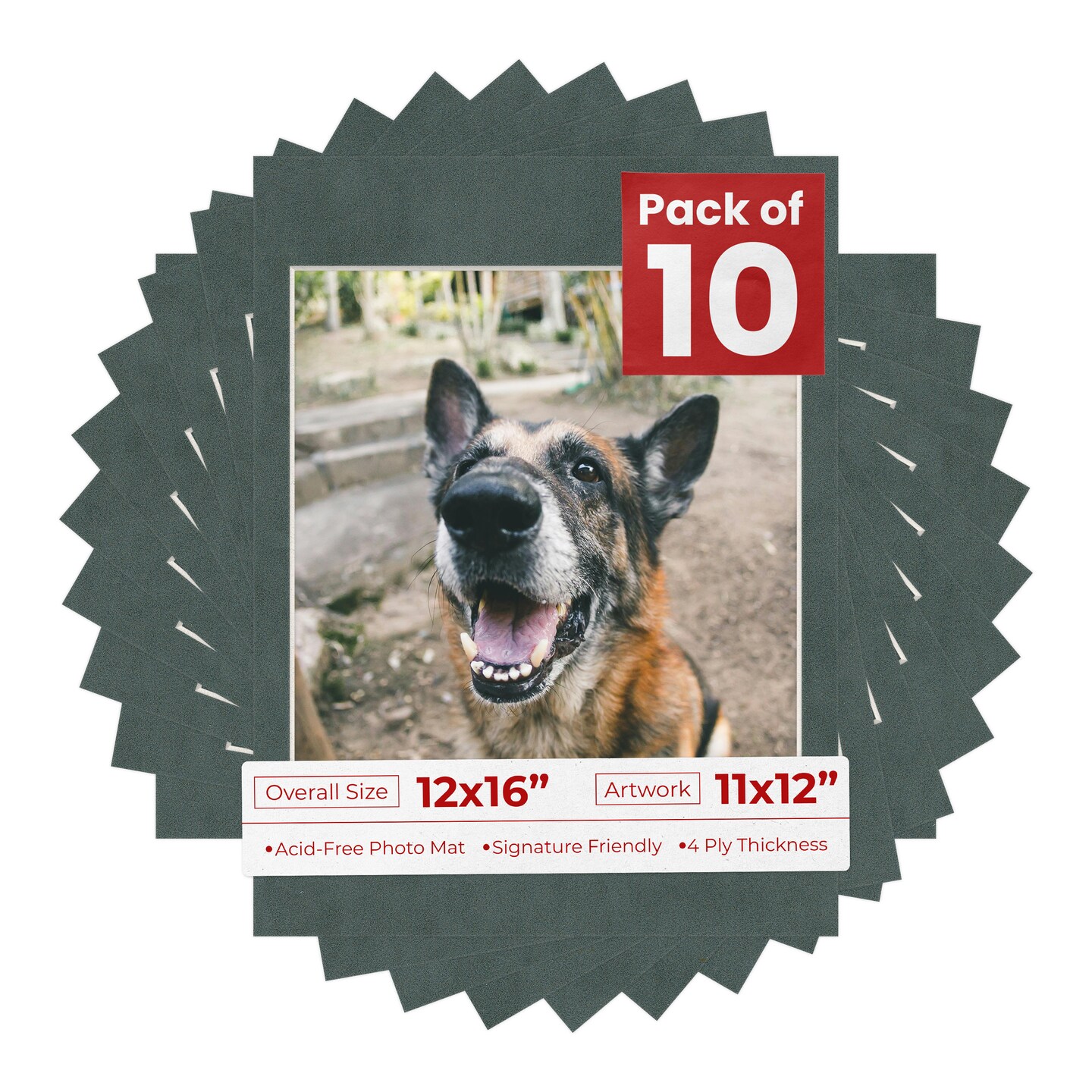 Dark Grey Suede Mat Board for 12x16 Frames - Fits 11x12 Photos