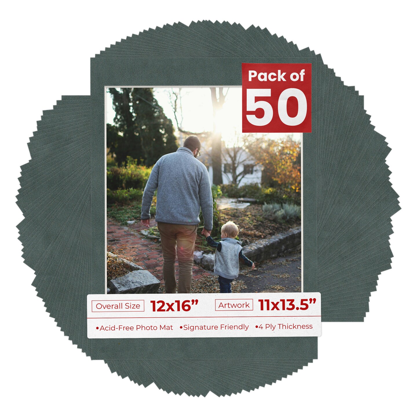 Dark Grey Suede Mat Board for 12x16 Frames - Fits 11x13.5 Photos