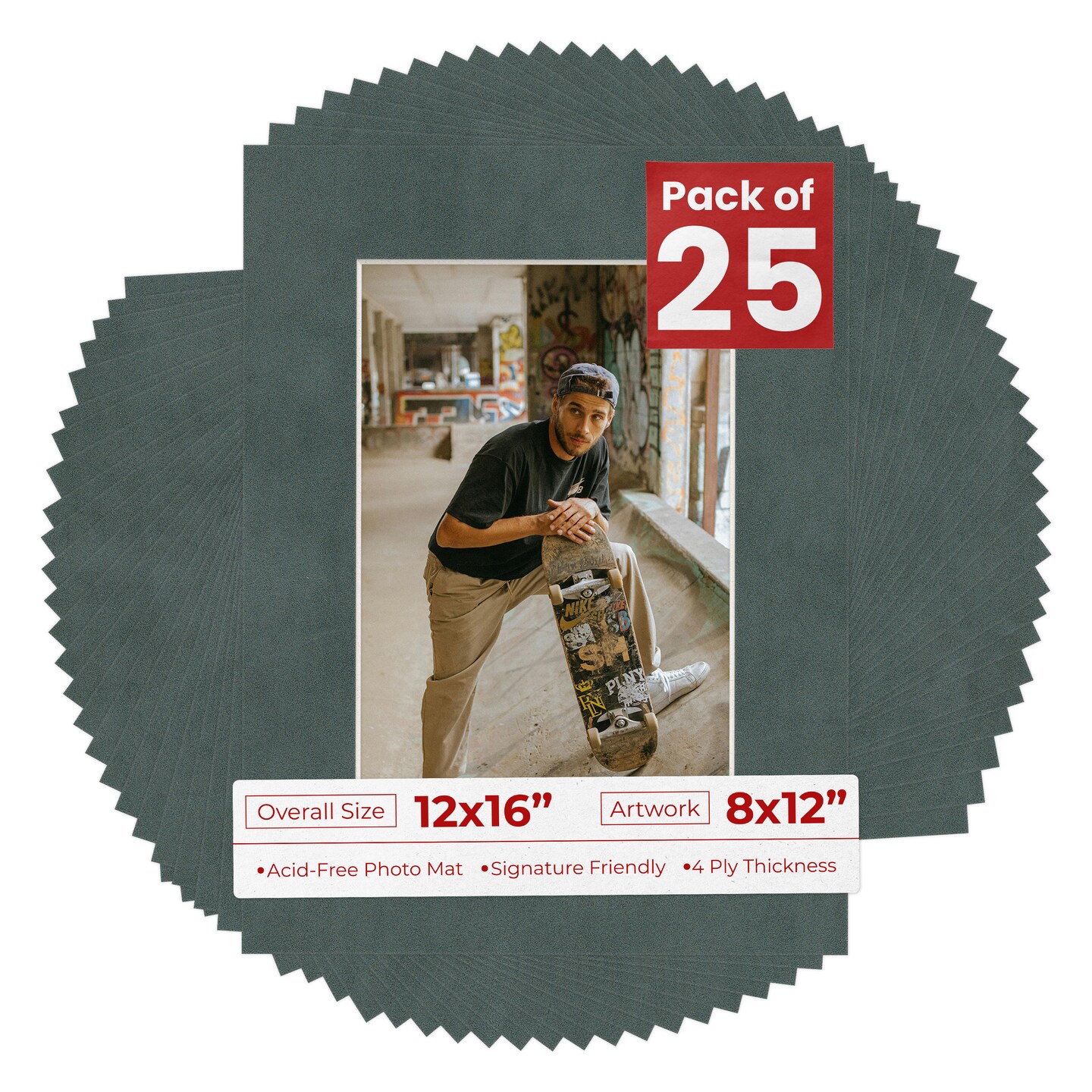Dark Grey Suede Mat Board for 12x16 Frames - Fits 8x12 Photos