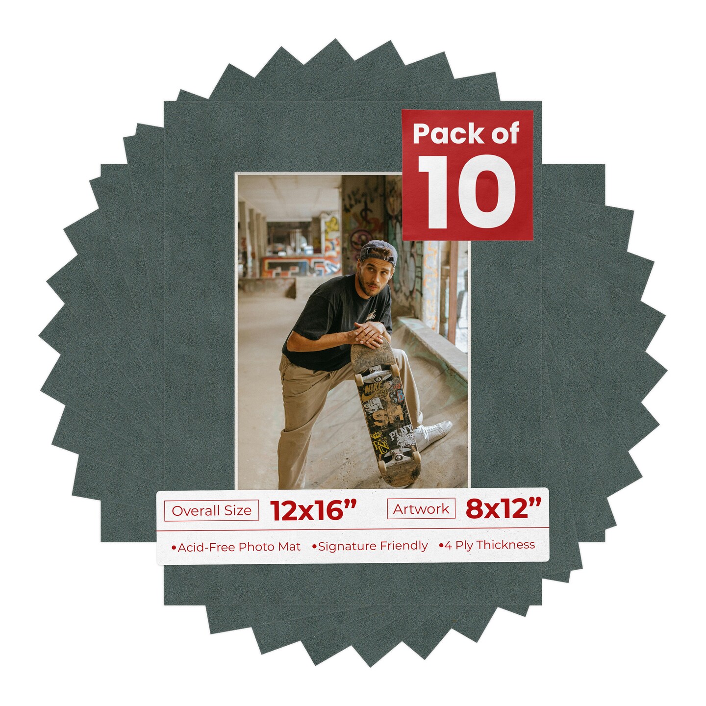 Dark Grey Suede Mat Board for 12x16 Frames - Fits 8x12 Photos