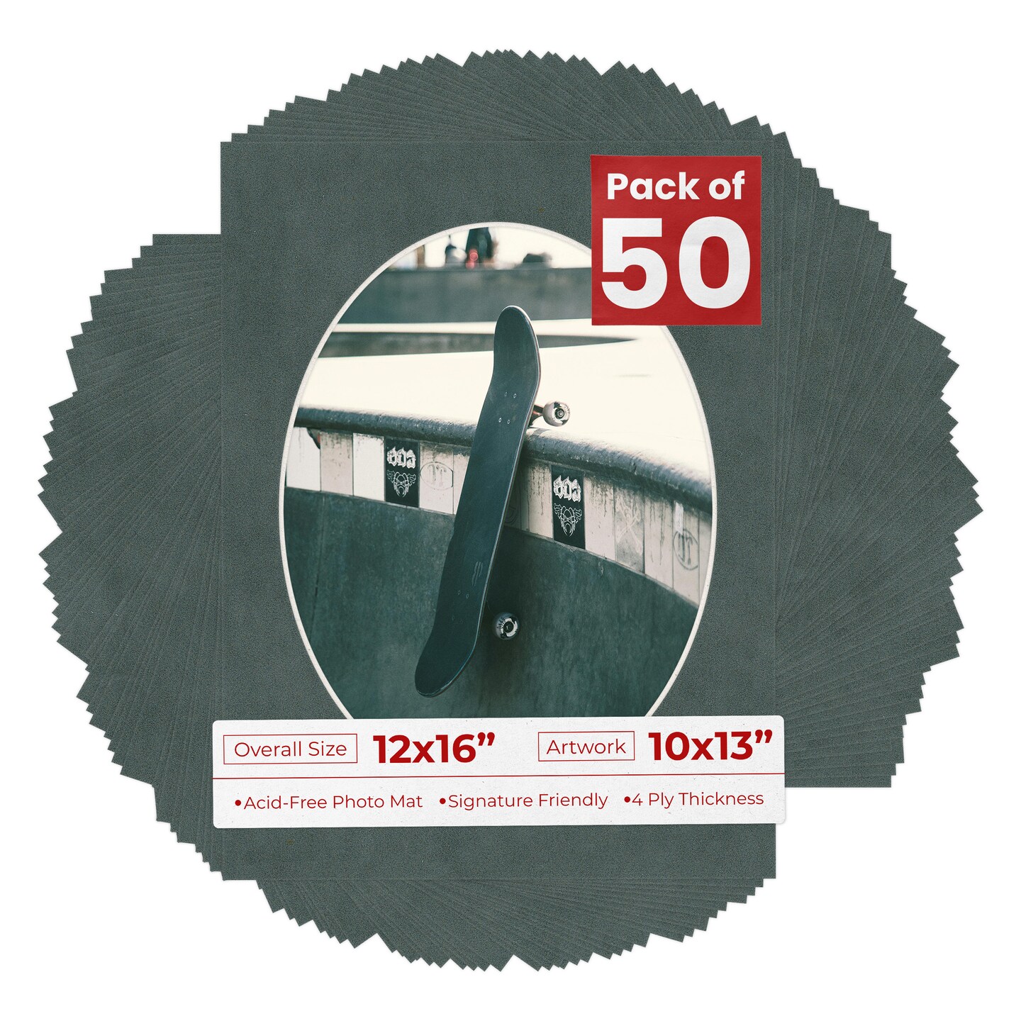 Dark Grey Suede Mat Board for 12x16 Frames - Oval Opening for 10x13 Photos