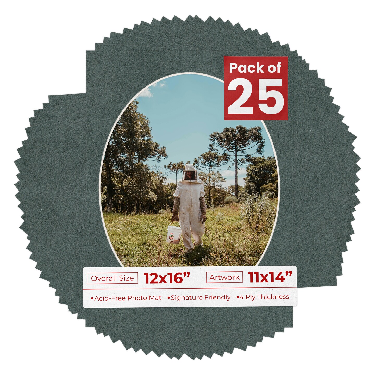 Dark Grey Suede Mat Board for 12x16 Frames - Oval Opening for 11x14 Photos