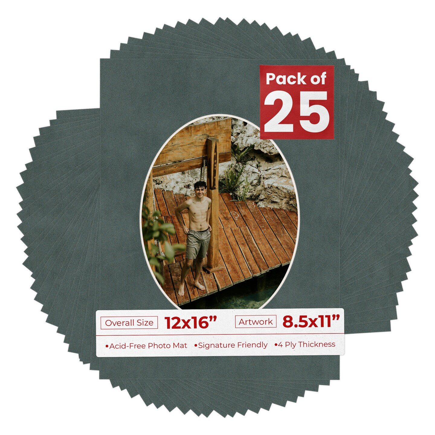 Dark Grey Suede Mat Board for 12x16 Frames - Oval Opening for 8.5x11 Photos