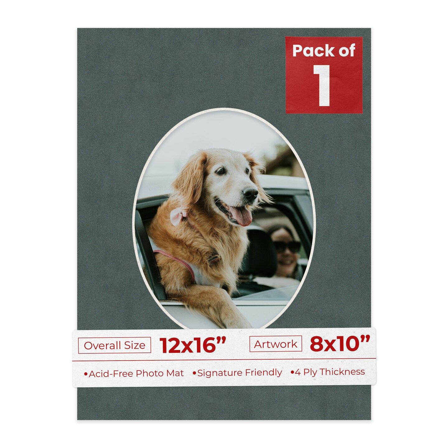 Dark Grey Suede Mat Board for 12x16 Frames - Oval Opening for 8x10 Photos
