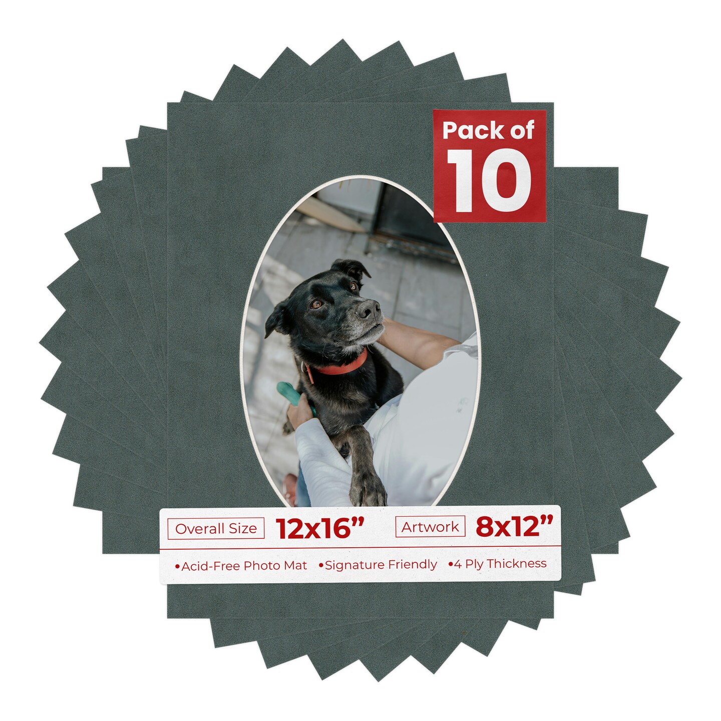 Dark Grey Suede Mat Board for 12x16 Frames - Oval Opening for 8x12 Photos