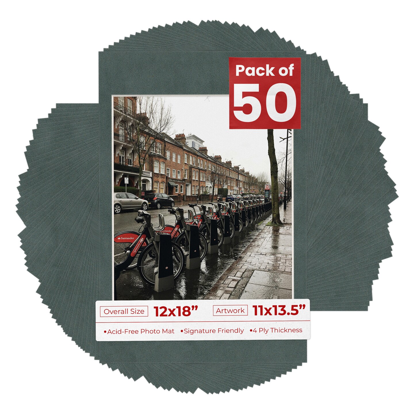 Dark Grey Suede Mat Board for 12x18 Frames - Fits 11x13.5 Photos