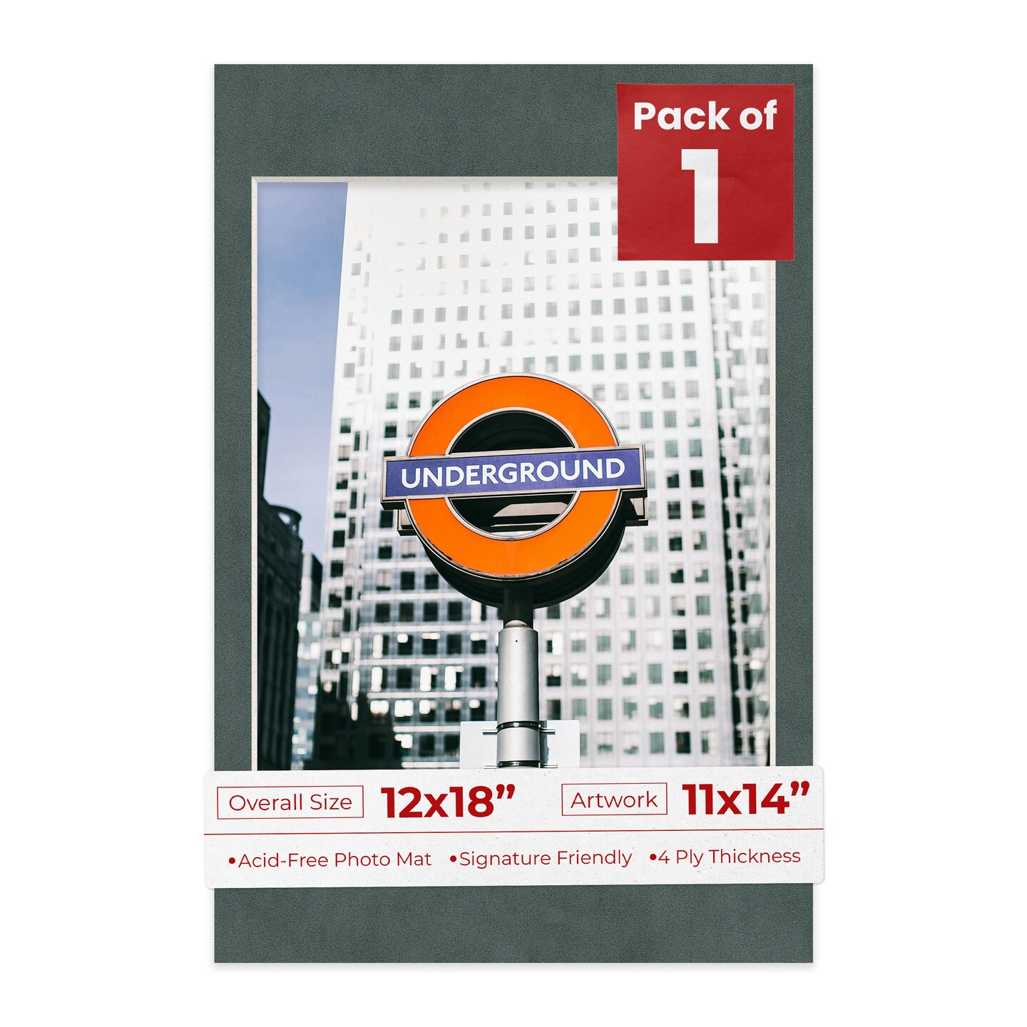 Dark Grey Suede Mat Board for 12x18 Frames - Fits 11x14 Photos