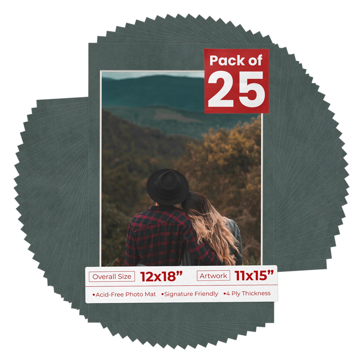 Dark Grey Suede Mat Board for 12x18 Frames - Fits 11x15 Photos