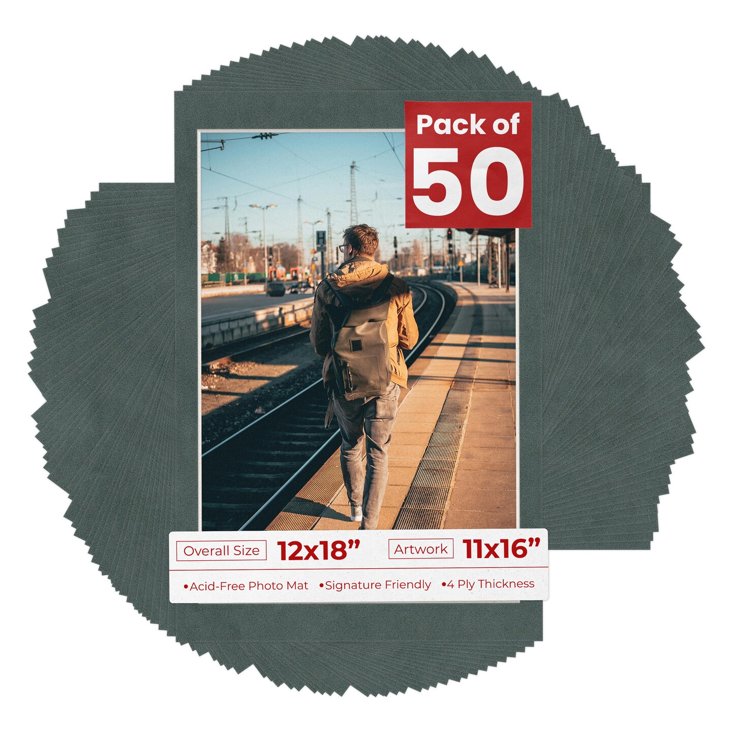 Dark Grey Suede Mat Board for 12x18 Frames - Fits 11x16 Photos