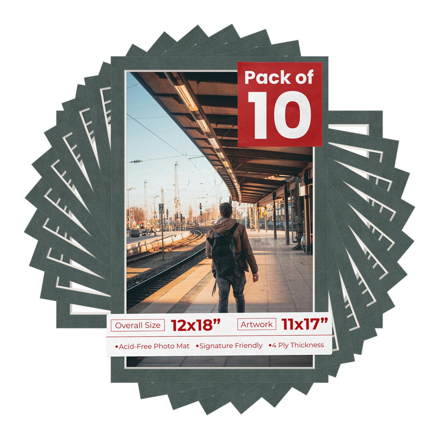 Dark Grey Suede Mat Board for 12x18 Frames - Fits 11x17 Photos