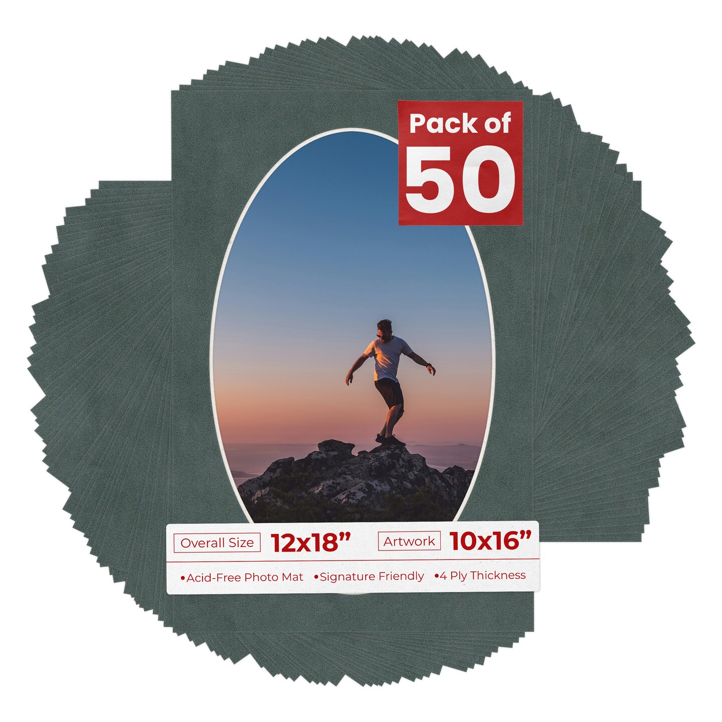 Dark Grey Suede Mat Board for 12x18 Frames - Oval Opening for 10x16 Photos