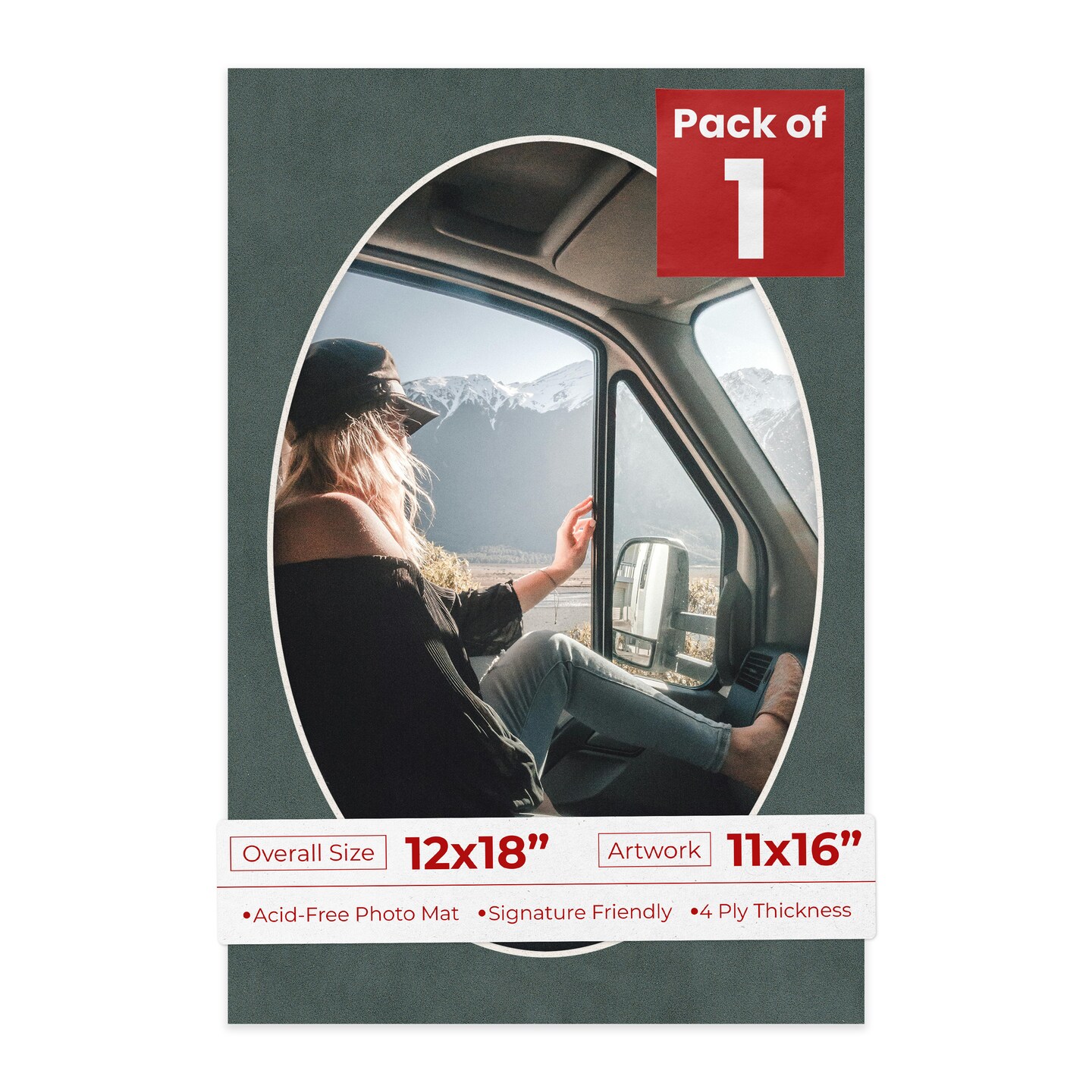 Dark Grey Suede Mat Board for 12x18 Frames - Oval Opening for 11x16 Photos