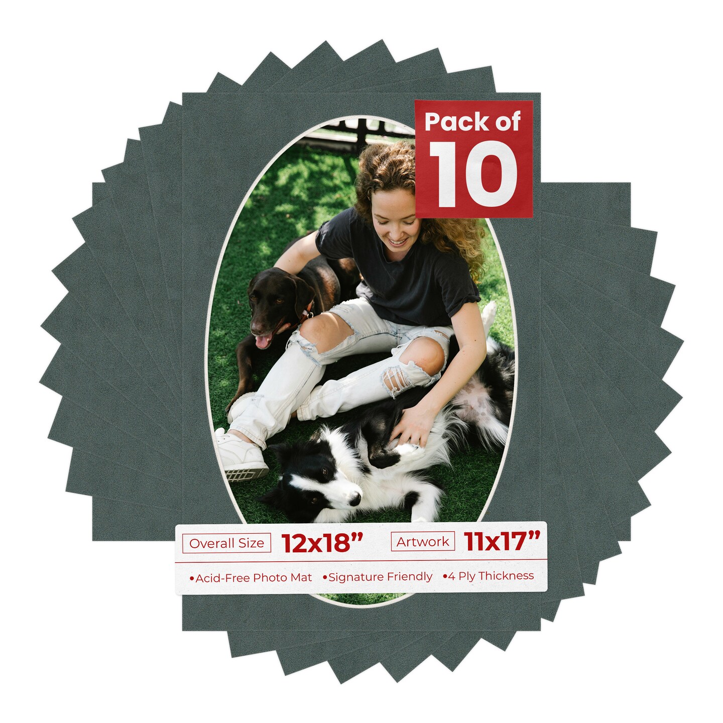 Dark Grey Suede Mat Board for 12x18 Frames - Oval Opening for 11x17 Photos