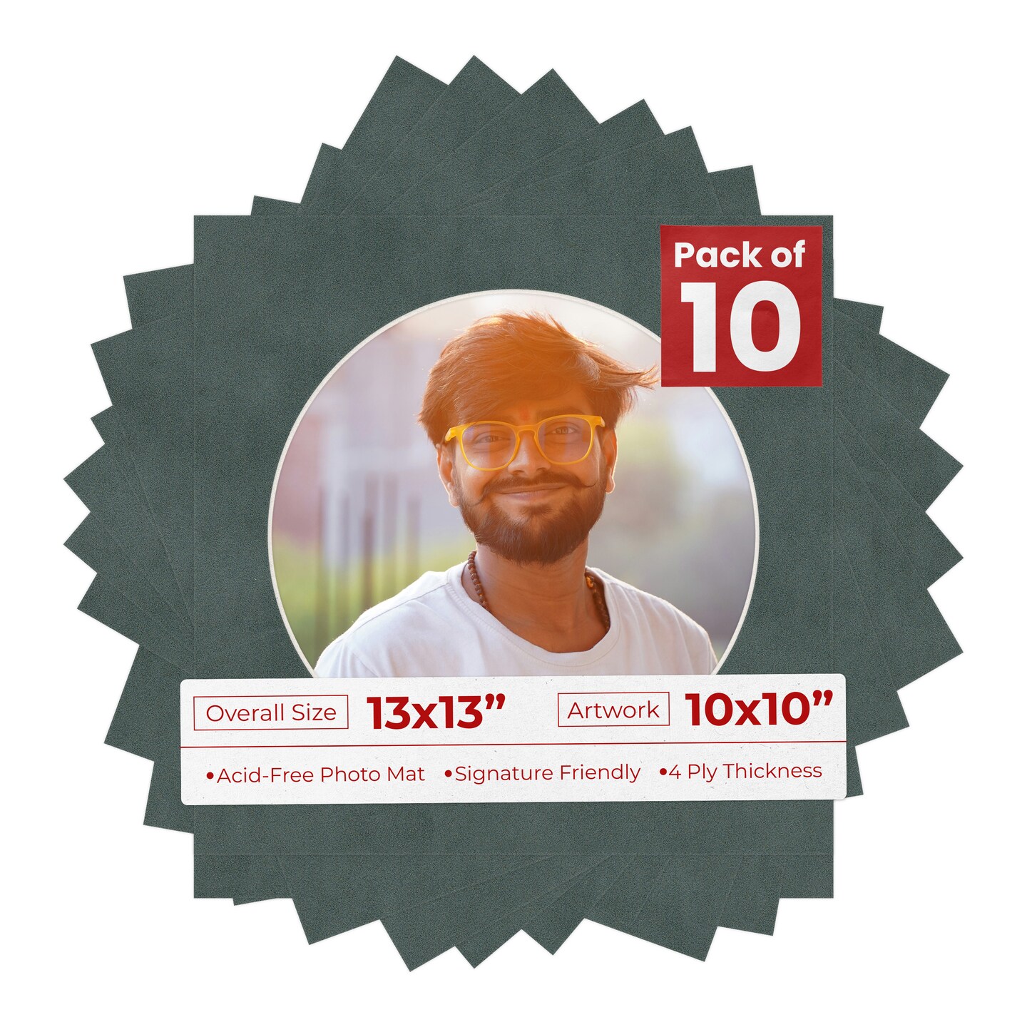 Dark Grey Suede Mat Board for 13x13 Frames - Circle Opening for 10x10 Photos