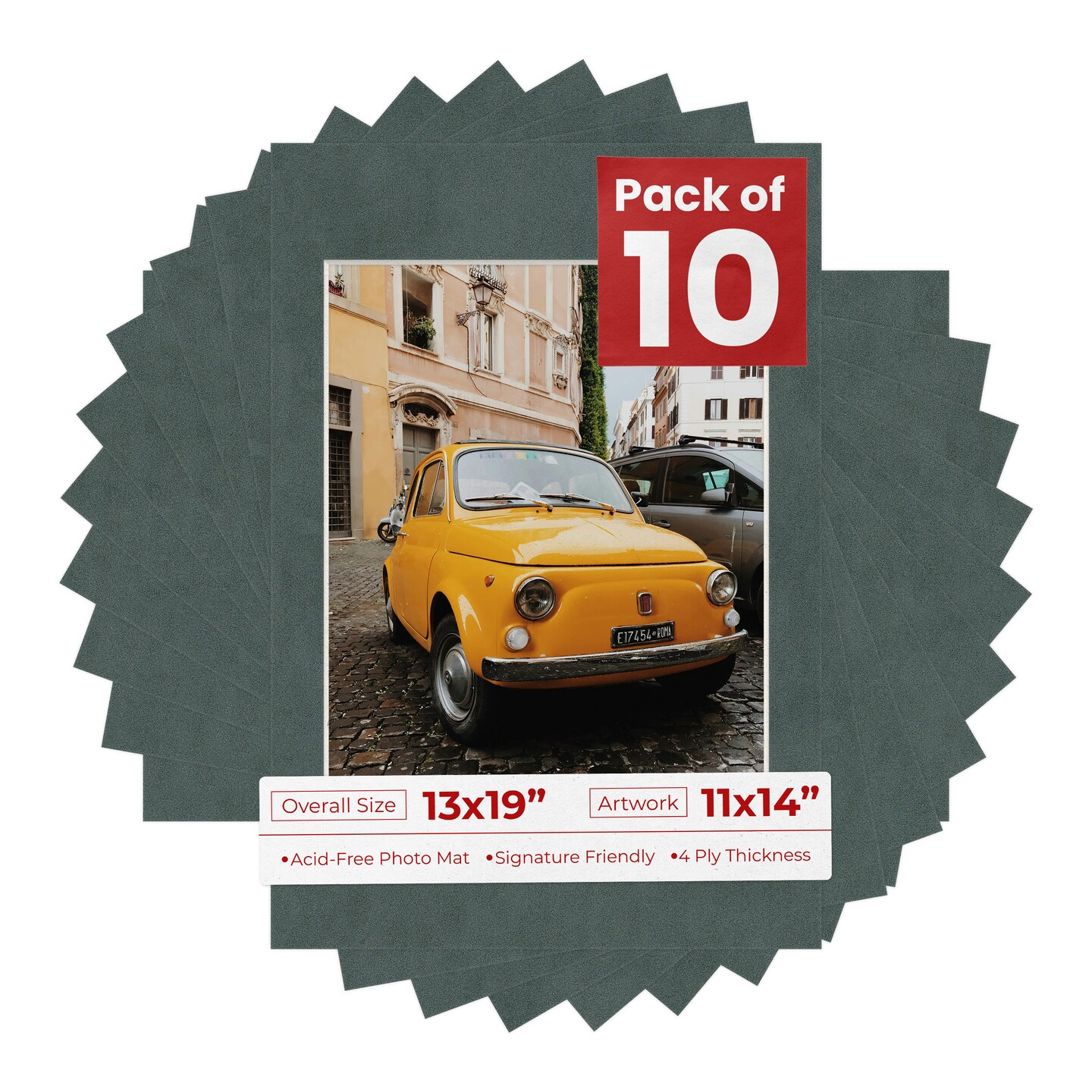 Dark Grey Suede Mat Board for 13x19 Frames - Fits 11x14 Photos