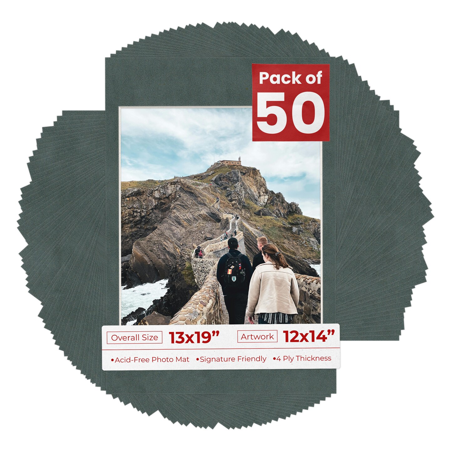Dark Grey Suede Mat Board for 13x19 Frames - Fits 12x14 Photos