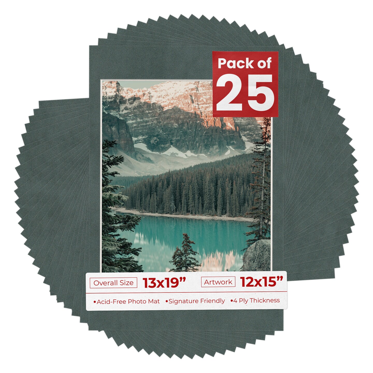Dark Grey Suede Mat Board for 13x19 Frames - Fits 12x15 Photos