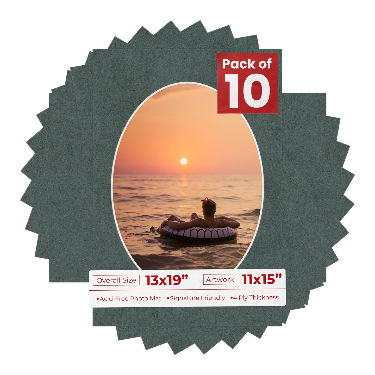 Dark Grey Suede Mat Board for 13x19 Frames - Oval Opening for 11x15 Photos