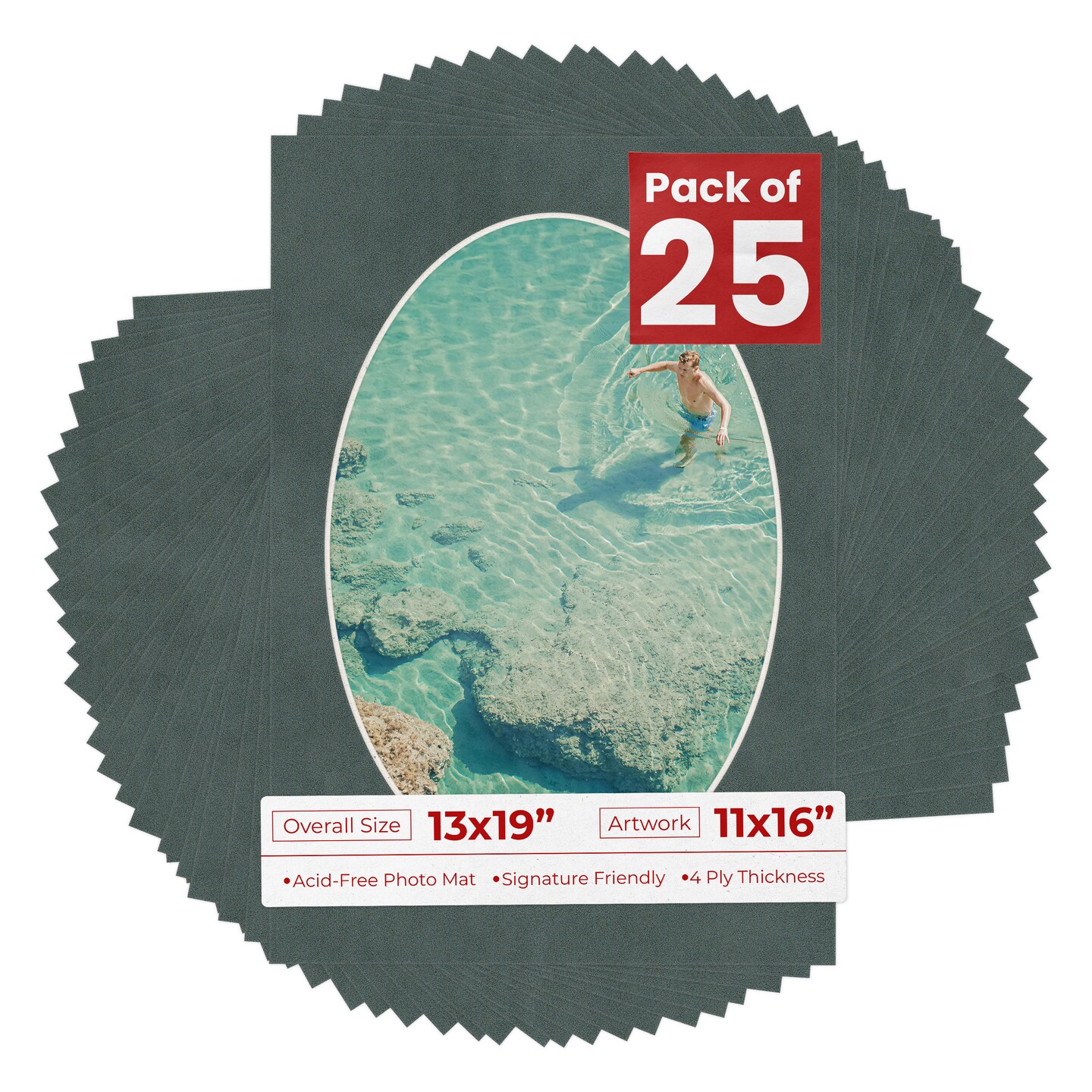 Dark Grey Suede Mat Board for 13x19 Frames - Oval Opening for 11x16 Photos