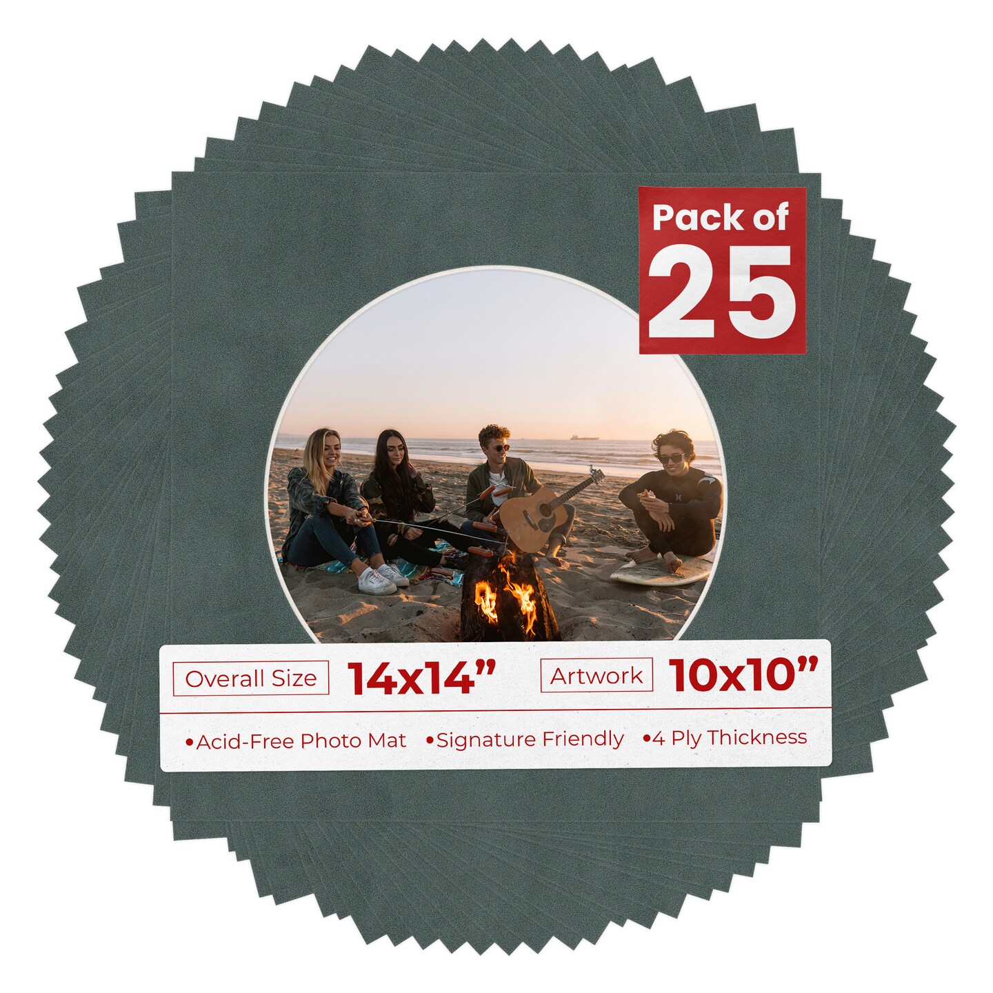 Dark Grey Suede Mat Board for 14x14 Frames - Circle Opening for 10x10 Photos