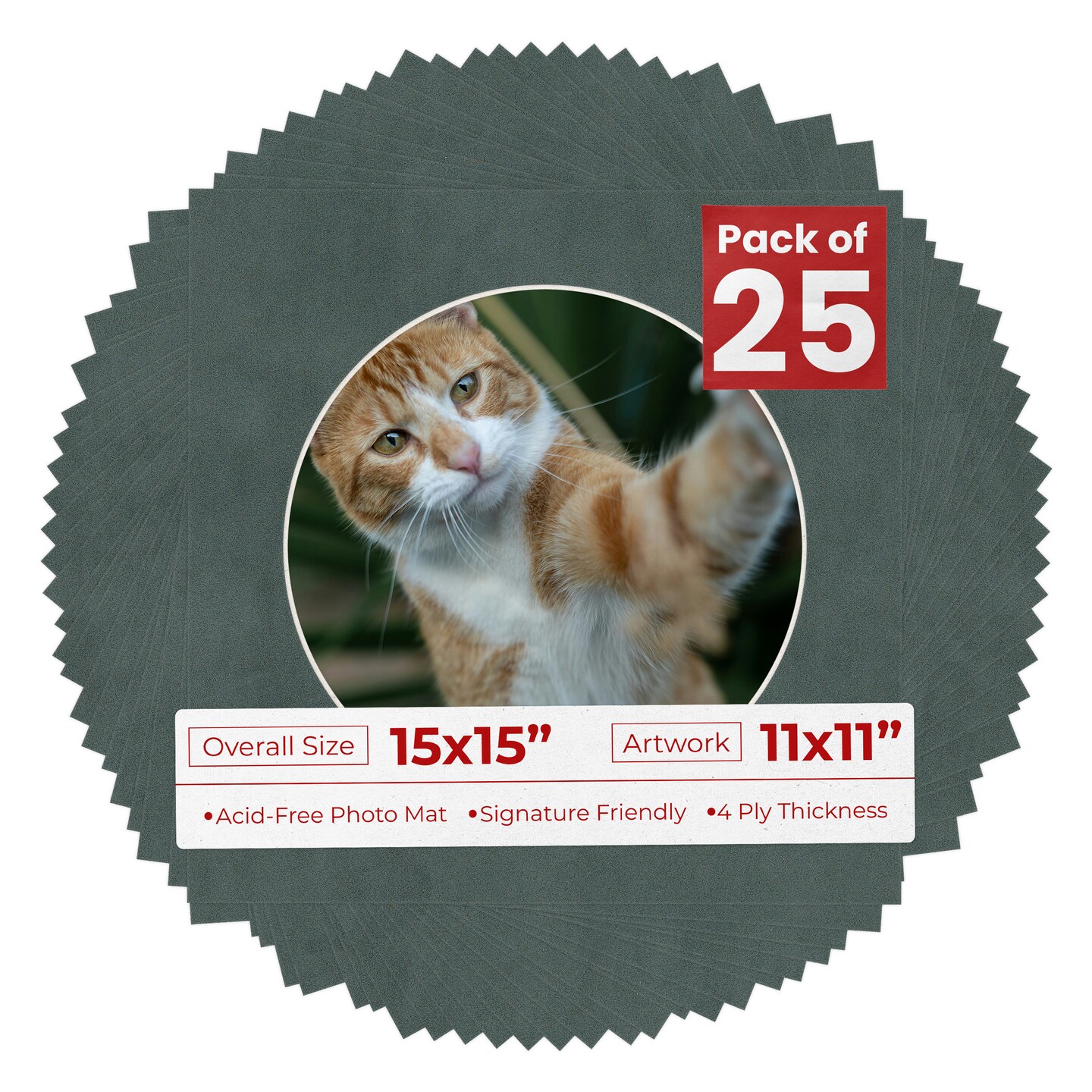 Dark Grey Suede Mat Board for 15x15 Frames - Circle Opening for 11x11 Photos