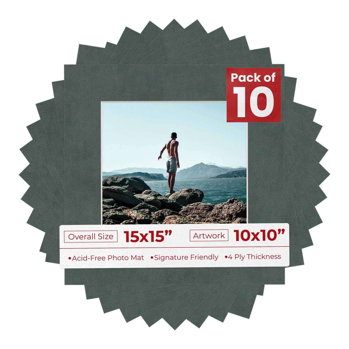 Dark Grey Suede Mat Board for 15x15 Frames - Fits 10x10 Photos