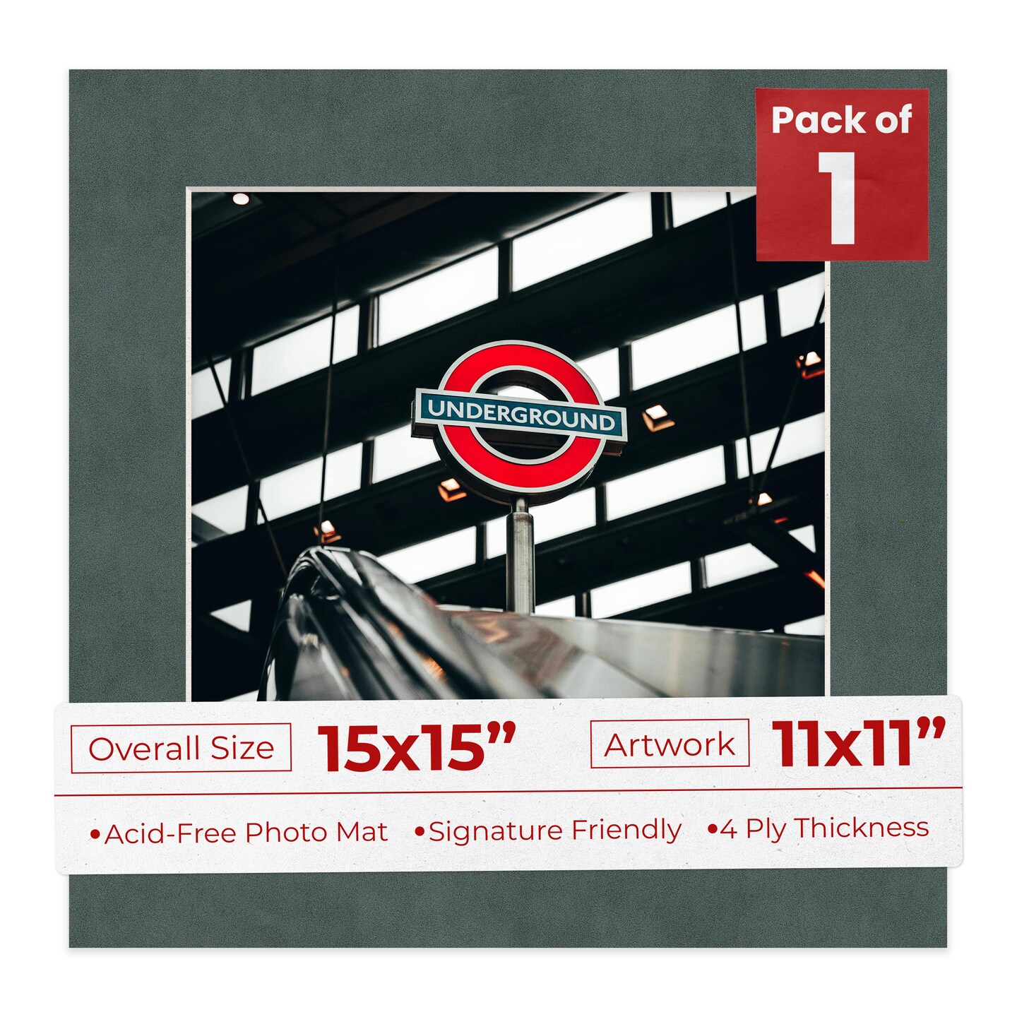 Dark Grey Suede Mat Board for 15x15 Frames - Fits 11x11 Photos