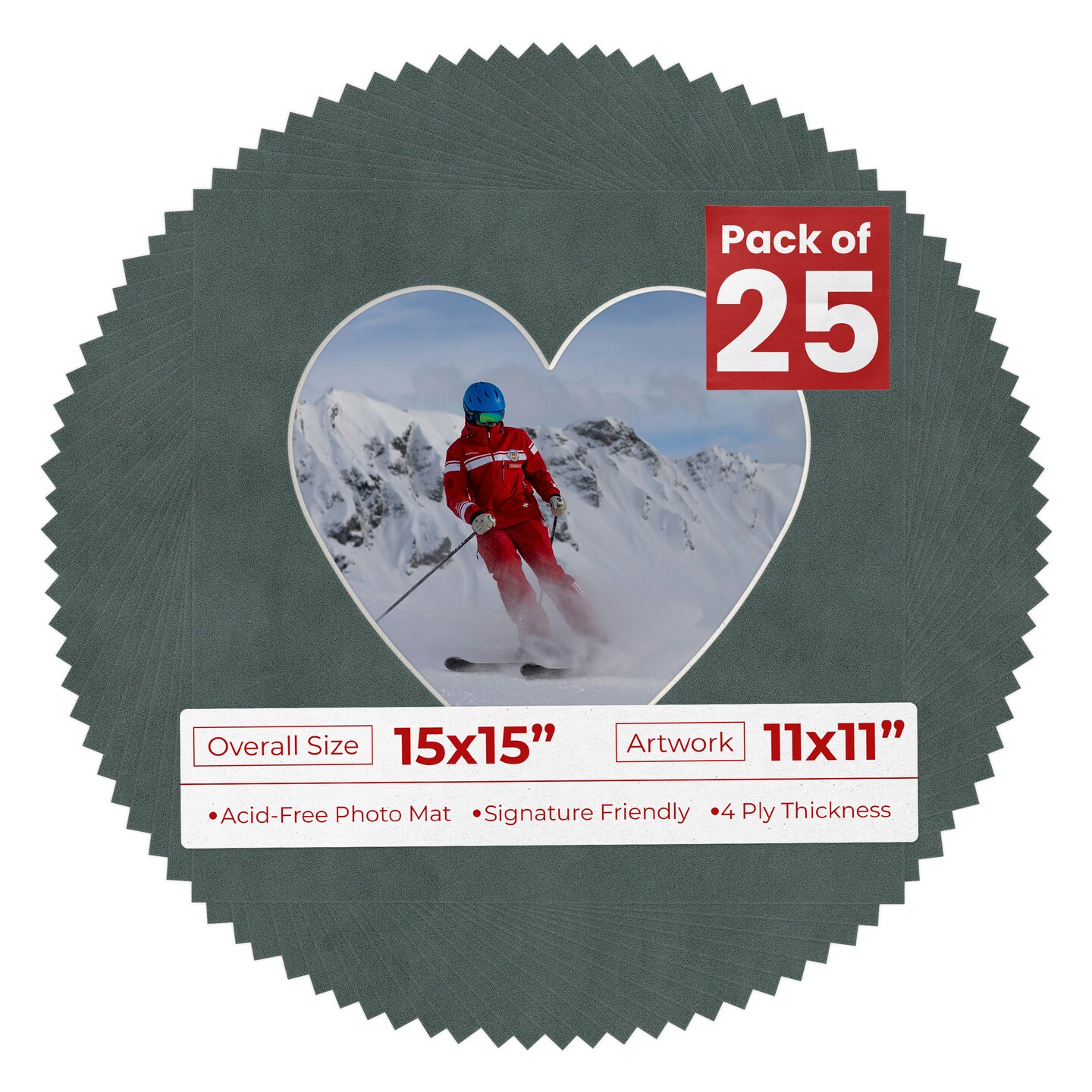Dark Grey Suede Mat Board for 15x15 Frames - Heart Opening for 11x11 Photos