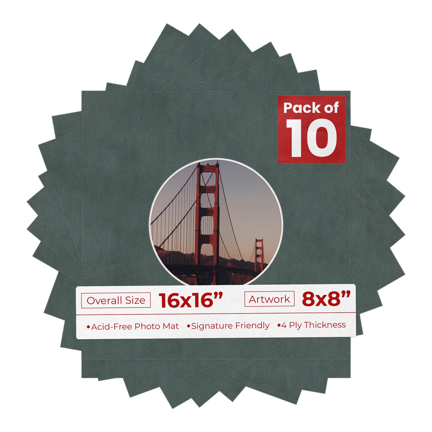 Dark Grey Suede Mat Board for 16x16 Frames - Circle Opening for 8x8 Photos