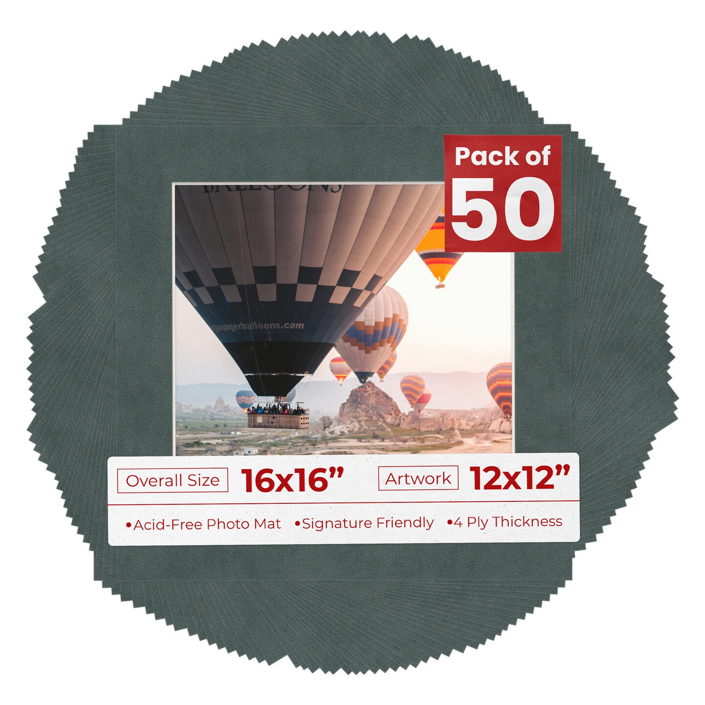 Dark Grey Suede Mat Board for 16x16 Frames - Fits 12x12 Photos