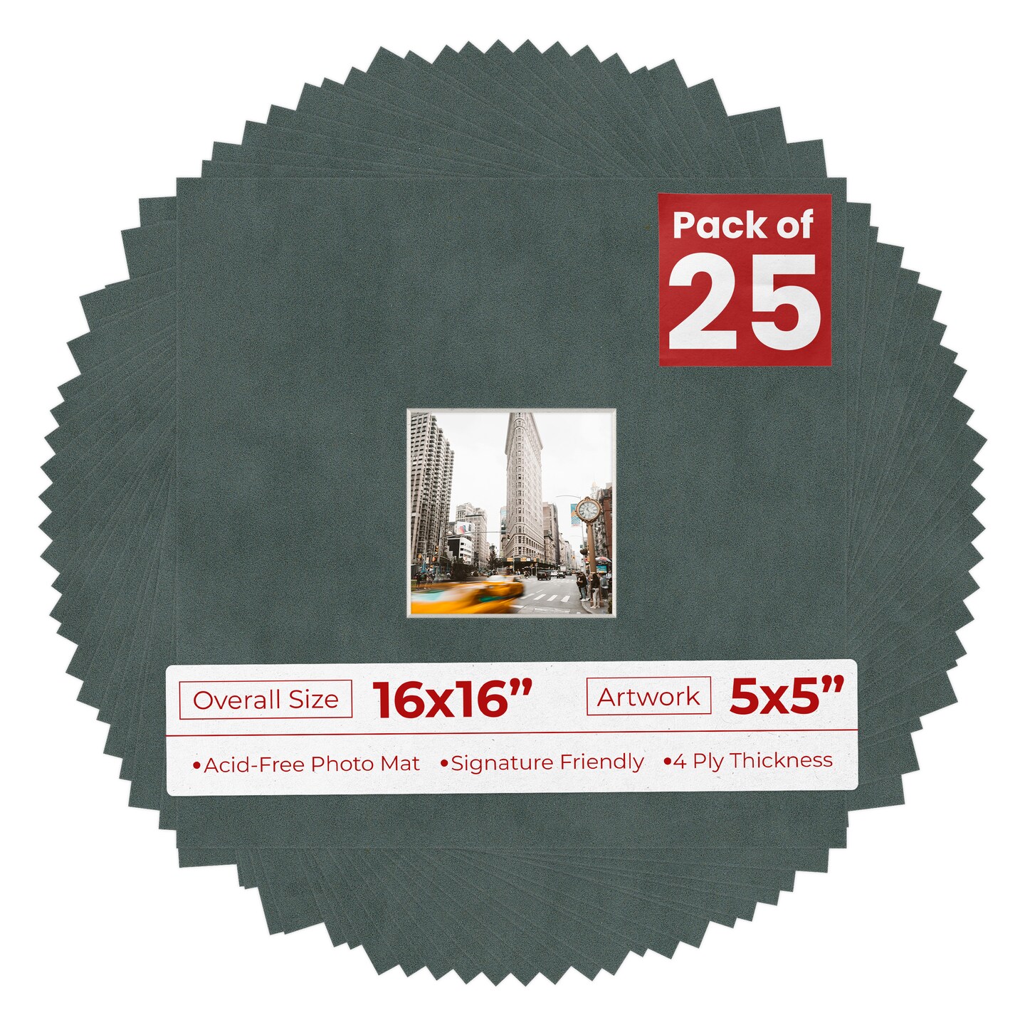 Dark Grey Suede Mat Board for 16x16 Frames - Fits 5x5 Photos