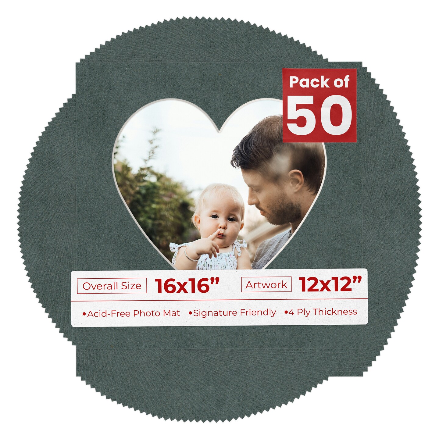 Dark Grey Suede Mat Board for 16x16 Frames - Heart Opening for 12x12 Photos