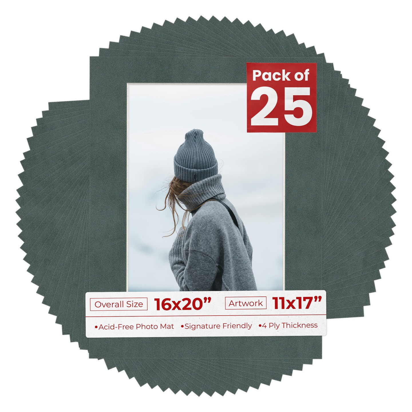 Dark Grey Suede Mat Board for 16x20 Frames - Fits 11x17 Photos