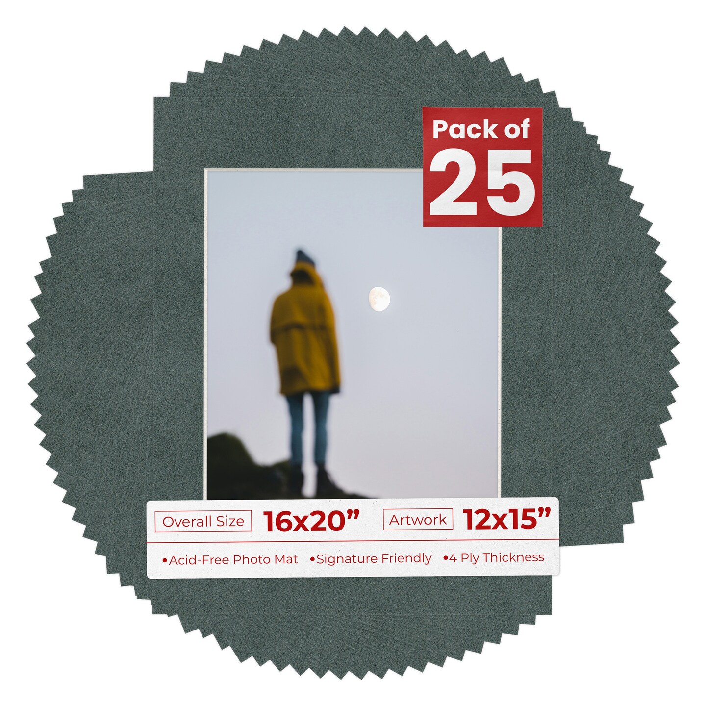 Dark Grey Suede Mat Board for 16x20 Frames - Fits 12x15 Photos
