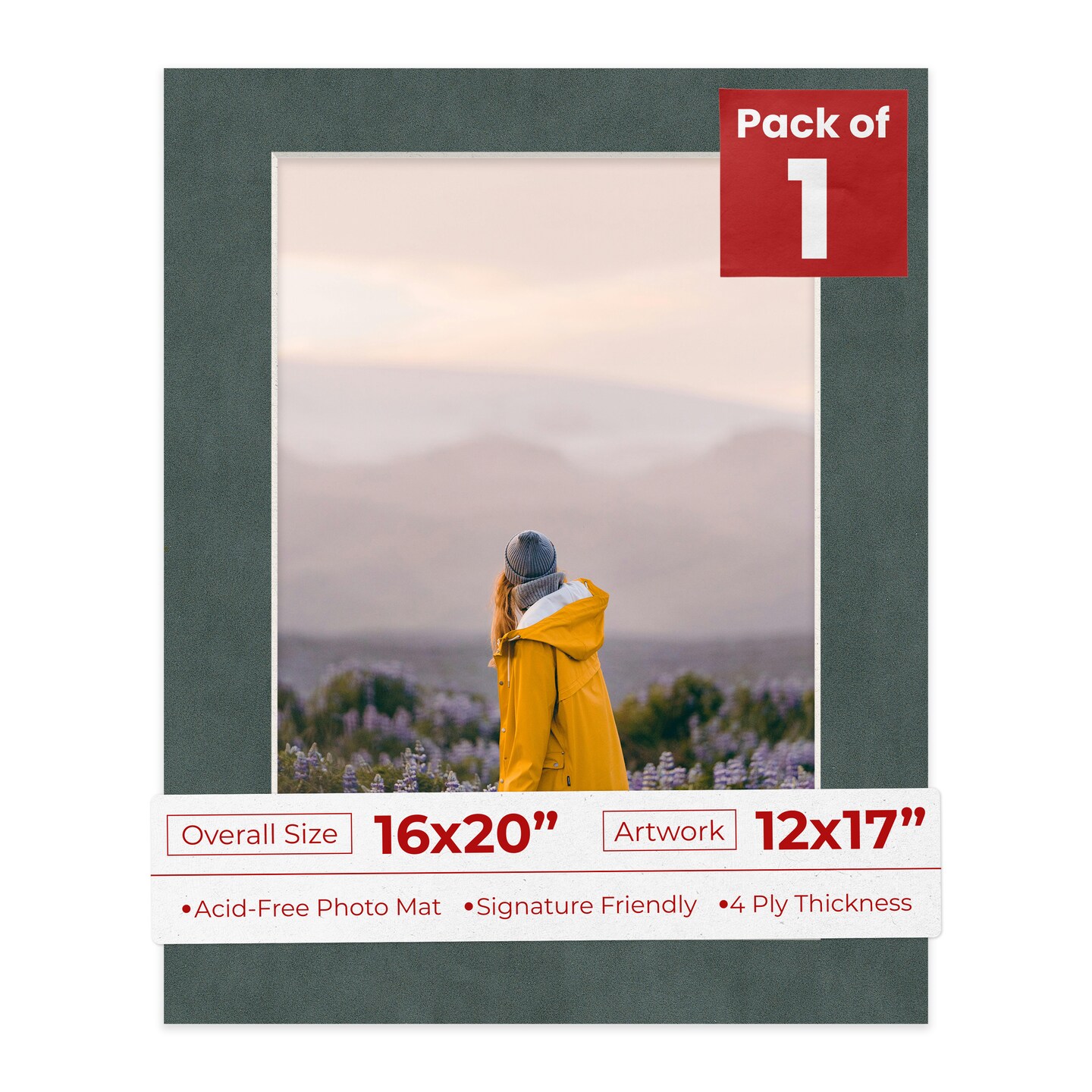 Dark Grey Suede Mat Board for 16x20 Frames - Fits 12x17 Photos