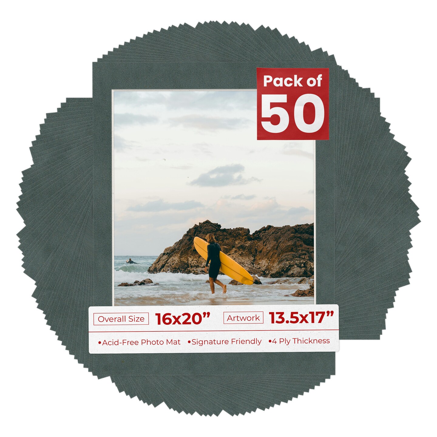 Dark Grey Suede Mat Board for 16x20 Frames - Fits 13.5x17 Photos